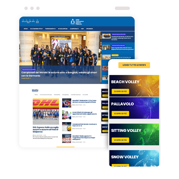 Nell’ambito della nostra collaborazione con la Federazione Italiana Pallavolo, abbiamo provveduto alla migrazione dei contenuti dal vecchio al nuovo sito, che abbiamo sviluppato e curato graficamente. Sito progettato per informare immediatamente l’utente, attraverso lo slider centrale, su tutte le novità del mondo pallavolo, con forte sottolineatura sulle Breaking News. Il portale accompagna l’utente tra regole, modulistica e nella guida pratica. Abbiamo lavorato su un sito che fosse prima di tutto istituzionale, ma che fosse comunque connesso con Over The Block, dal tone of voice decisamente più colloquiale.
